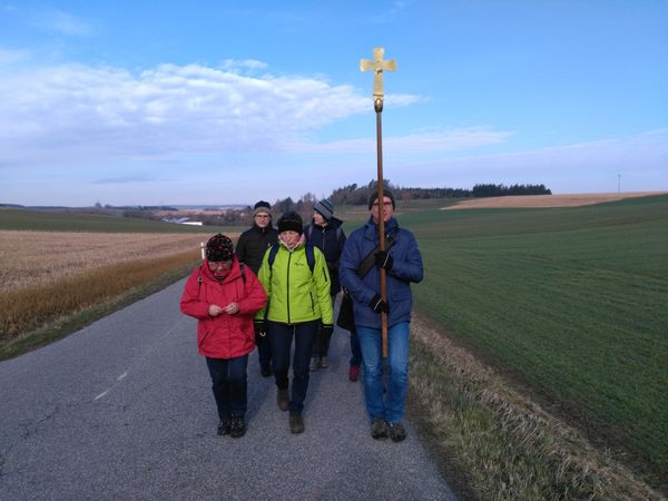 Am Karfreitag folgten neun Gläubige dem Aufruf der Kolpingsfamilie den letzten Weg Jesu mitzugehen. Pünktlich um 7 Uhr ging es von der Pfarrkirche zur ersten Station, der Sankt Michaelskirche in Unterdörnbach. Unterwegs wurde der schmerzhafte Rosenkranz gebetet. Erstmals wurde in den Gotteshäusern nicht der Kreuzweg aus dem Gotteslob vorgelesen, sondern ein nach Zitaten Adolph Kolpings aufgebauter Leidensweg vorgetragen.