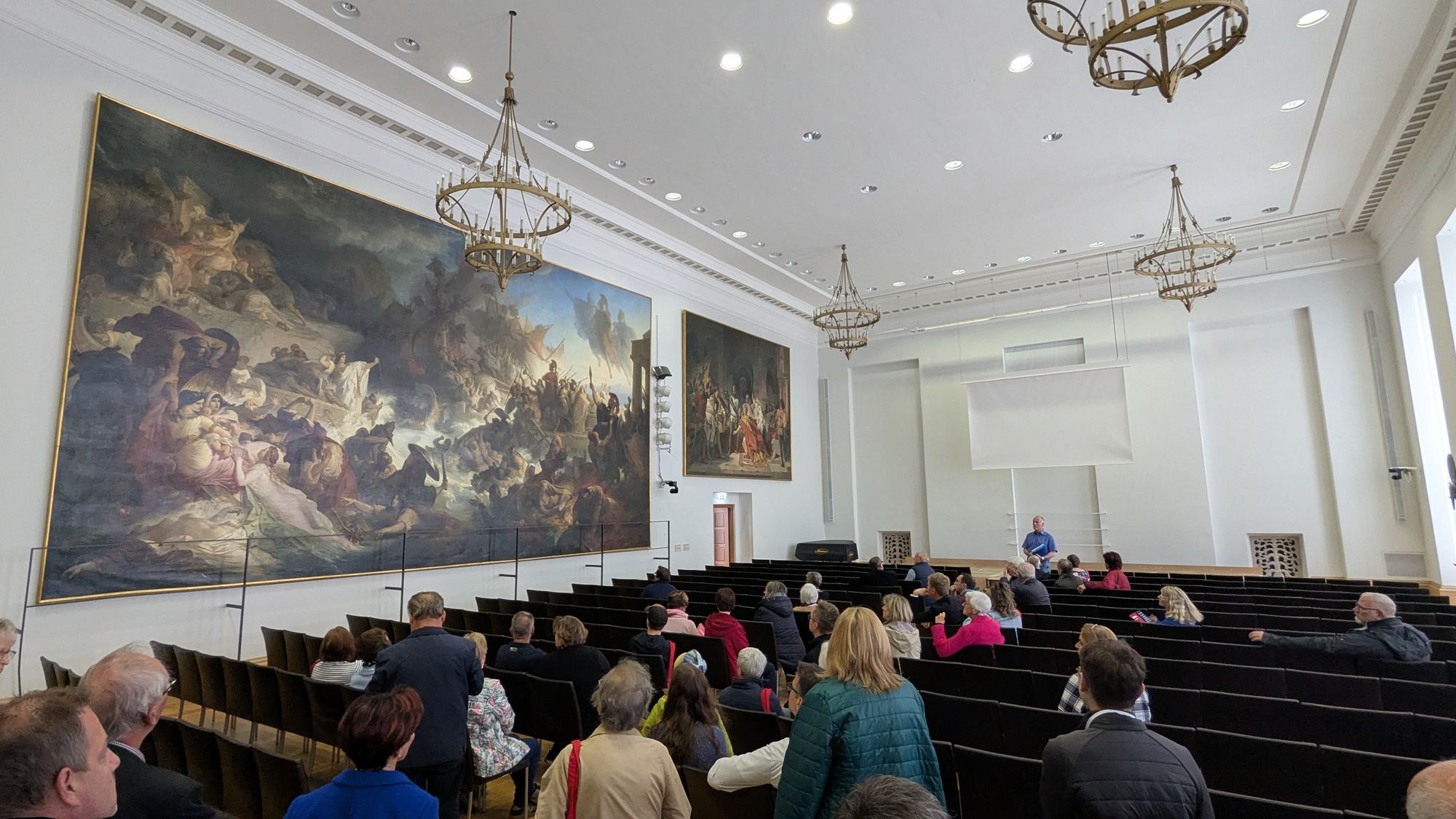 Nach einem gemeinsamen Mittagessen stand eine ausführliche Führung durch das Maximilianeum auf dem Programm. Besonders beeindruckend war das fast 60 Quadratmeter große Gemälde der Schlacht von Salamis, das die historischen Ereignisse eindrucksvoll darstellt.