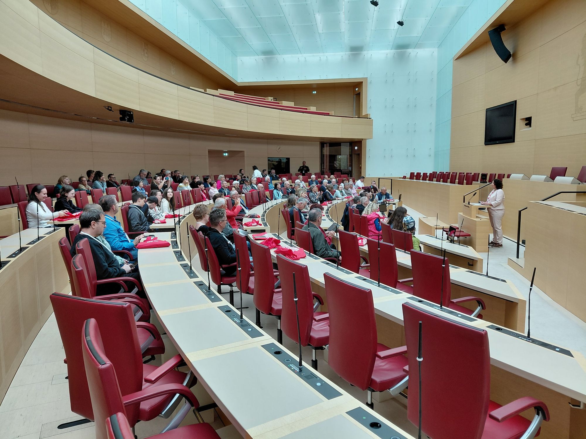 Der Höhepunkt des Besuchs war die Diskussion mit MdL Ruth Müller im Plenarsaal. Die Kolpingsfamilie durfte dabei auf den Stühlen der Abgeordneten Platz nehmen. Auch die Jugendlichen zeigten großes Interesse bei dem Gespräch: Sie stellten konkrete und nachdenkliche Fragen, etwa zur Gestaltung des Plenarsaals oder welche Gesetze Ruth Müller ändern oder streichen würde, wenn sie könnte. Für die Kolpingsmitglieder bot die anschließende persönliche Gesprächsrunde Gelegenheit, über Jugendarbeit und gesellschaftliche Verantwortung zu diskutieren.