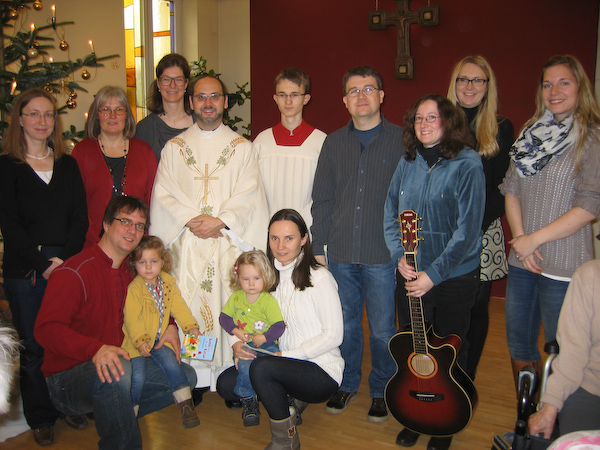 Zweimal im Jahr besucht die Kolpingsfamilie das Ergoldsbacher Senioren- und Pflegeheim, um gemeinsam mit den Heimbewohnern Gottesdienst zu feiern. Am zweiten Weihnachtsfeiertag kamen deshalb einige Mitglieder zusammen mit Kaplan Christian Fleischmann in die Hauskapelle und sangen weihnachtliche Lieder aus dem Gotteslob mit. Erstmals dabei war der neue Kolpingfamilienkreis, die Senioren freuten sich über die mitgekommenen Kinder. Musikalisch umrahmt wurde die Messe durch Manuela Faltermeier an der Gitarre und Doris am Hackbrett. Mit diesen Besuchen wollen die Kolpingmitglieder den Heimbewohnern eine kleine Freude machen und ihnen so zeigen, dass an sie gedacht wird.