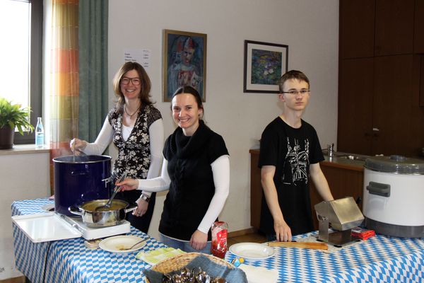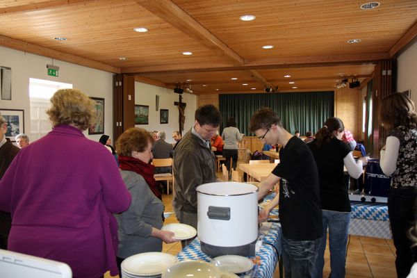 Am 17.03. führte die Kolpingsfamilie zum zweiundzwanzigsten Mal ihr Misereor Fastenessen durch. Direkt nach dem Gottesdienst wurde ab etwa 11 Uhr im Pfarrheim von den freiwilligen Helfern des Vereins Kartoffelsuppe, Wienerwürstchen, Brot und Getränke verkauft. Die Suppe wurde wieder von Mitgliedern und Freunden des Vereins kostenlos zur Verfügung gestellt. Einige Familien nahmen auch die Gelegenheit war und nahmen sich ihr Mittagessen in mitgebrachten Behältnissen mit nach Hause. Die Veranstalter konnten rund 50 Liter Kartoffelsuppe und sechzig Paar Wiener ausgeben.
