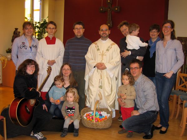 Am Ostermontag feierten Mitglieder des Kolpingfamilienkreises gemeinsam mit den Bewohnern und deren Angehörigen in der Kapelle des Senioren- und Pflegeheims Gottesdienst. Kaplan Christian Fleischmann zelebrierte die Ostermesse und die Gäste sangen die österlichen Lieder aus dem Gotteslob mit. Begleitet wurde der Gesang von Manuela Faltermeier an der Gitarre und Doris Summer am Hackbrett.