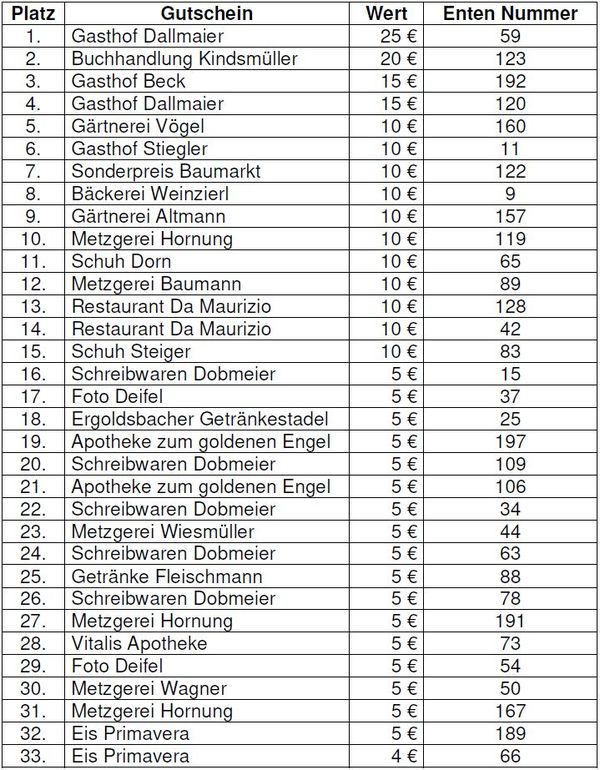 Noch nicht abgeholte Gewinne können bei der Familie Wimmer nach Rücksprache unter der Telefonnummer 08771/910438 abgeholt werden.