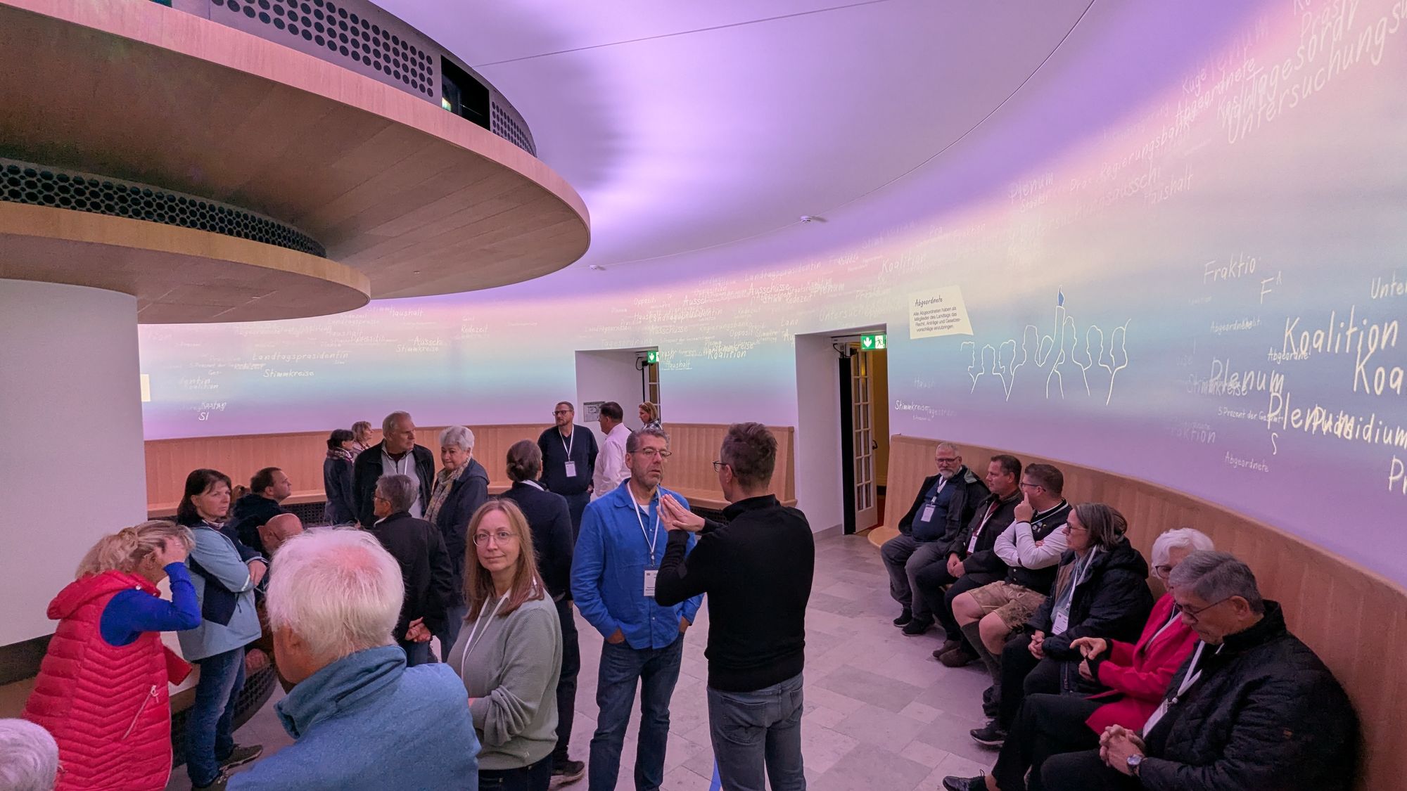 Der Höhepunkt des Besuchs war die Diskussion mit MdL Ruth Müller im Plenarsaal. Die Kolpingsfamilie durfte dabei auf den Stühlen der Abgeordneten Platz nehmen. Auch die Jugendlichen zeigten großes Interesse bei dem Gespräch: Sie stellten konkrete und nachdenkliche Fragen, etwa zur Gestaltung des Plenarsaals oder welche Gesetze Ruth Müller ändern oder streichen würde, wenn sie könnte. Für die Kolpingsmitglieder bot die anschließende persönliche Gesprächsrunde Gelegenheit, über Jugendarbeit und gesellschaftliche Verantwortung zu diskutieren.