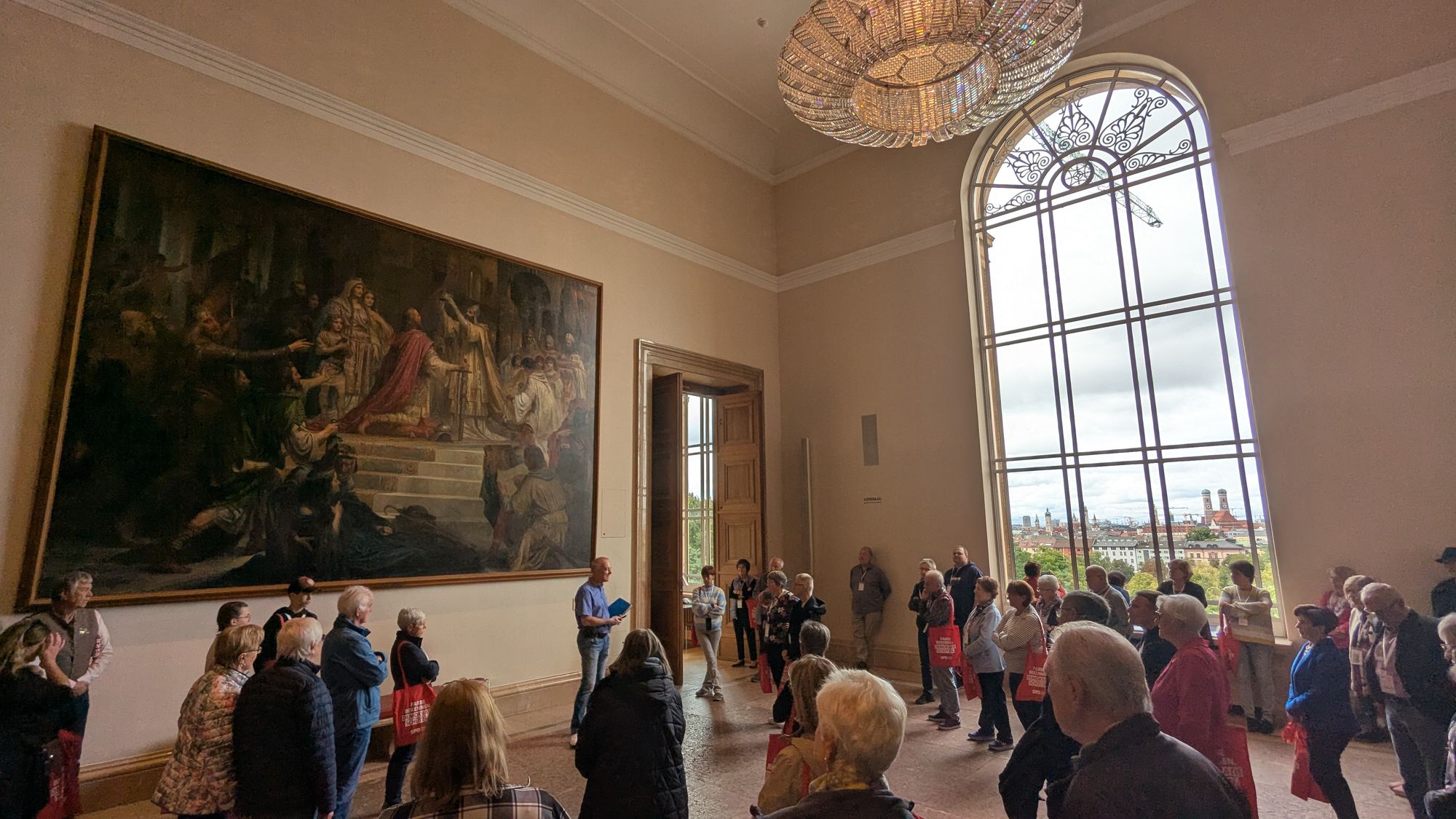Nach einem gemeinsamen Mittagessen stand eine ausführliche Führung durch das Maximilianeum auf dem Programm. Besonders beeindruckend war das fast 60 Quadratmeter große Gemälde der Schlacht von Salamis, das die historischen Ereignisse eindrucksvoll darstellt.
