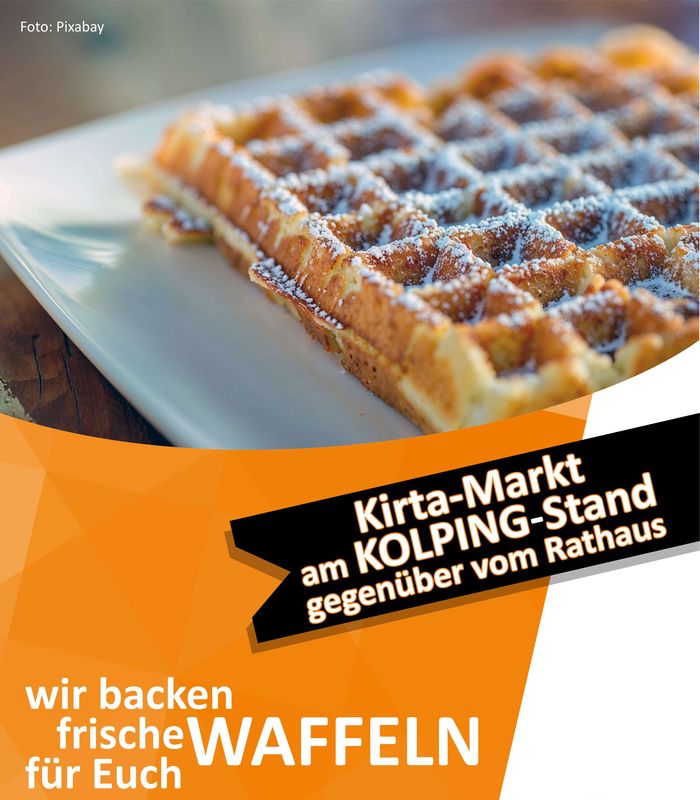 Wir wollen auch dieses Jahr am Kirtamarkt, 19. Oktober, wieder unseren erfolgreichen kleinen Stand machen und uns präsentieren. Dabei werden wir wie schon beim letzten Mal unseren Pavillon gegenüber dem Rathaus aufstellen und frische Waffeln und Kaltgetränke anbieten. Neben der Kulinarik gibt's dort auch immer nette Gespräche mit den Kunden und mit Passanten.